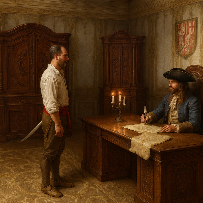 Начинается всё с имения мятежника английской короны, и наш ГГ, то есть доктор Питер Блад приезжает помогать