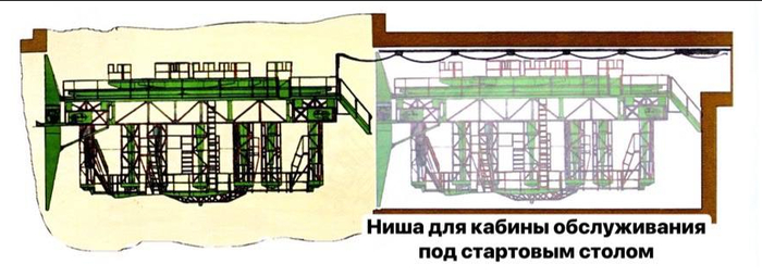 Давайте разбираться, на какие элементы стартового стола нам необходимо обратить внимание. Ведь стартовый комплекс - это сооружения, которые обеспечивают запуск ракеты: командные пункты управления, заправочные системы, хранение топлива, стартовый стол, фермы обслуживания и в том числе кабина обслуживания...