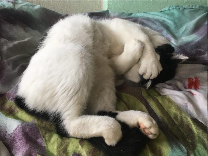 Это Егорка, и он смешно закрывает морду лапками, когда потягивается после сна :)