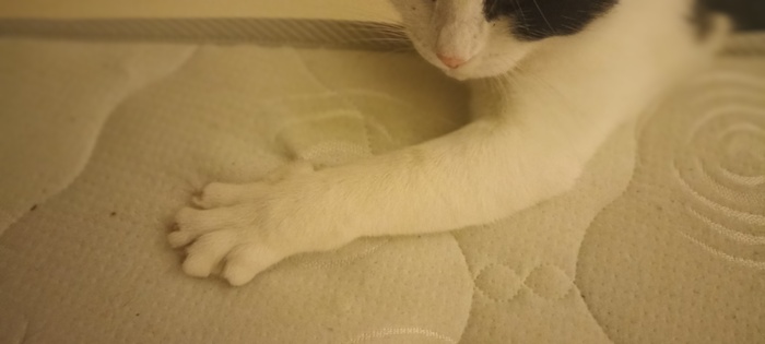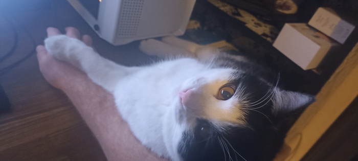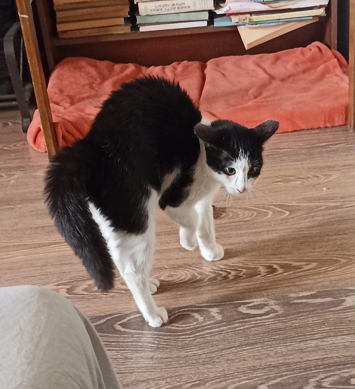 Начались проблемы с тем что я всё же работаю, в итоге кот был всё время в квартире, соседи стали рассказывать что слышно как кот громко мяучит. Когда возвращаюсь домой он всегда у двери и встречает меня, пока не получит дозу обнимах то не отстанет. К сожалению когда приходит кто-то кроме меня, он сразу убегает и порой шипит на других людей, особенно это показало когда у меня оставались родственники с собакой.. Было очень весело...