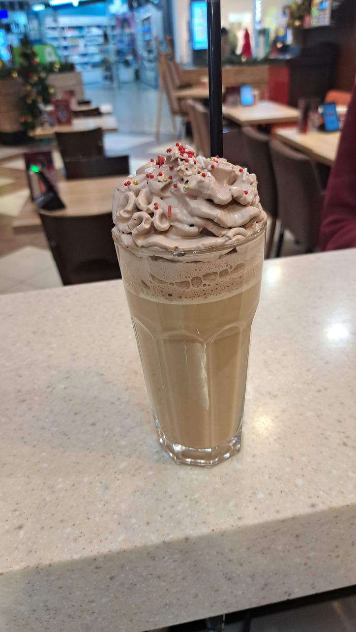 Латте с пенкой мокка муссом и кондитерской посыпкой