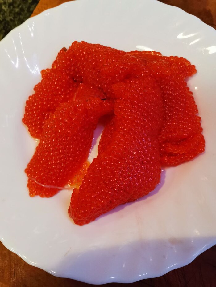 реакция на любую икру, кроме тобико из роллов. тобико не имеет вкуса, что грустно.