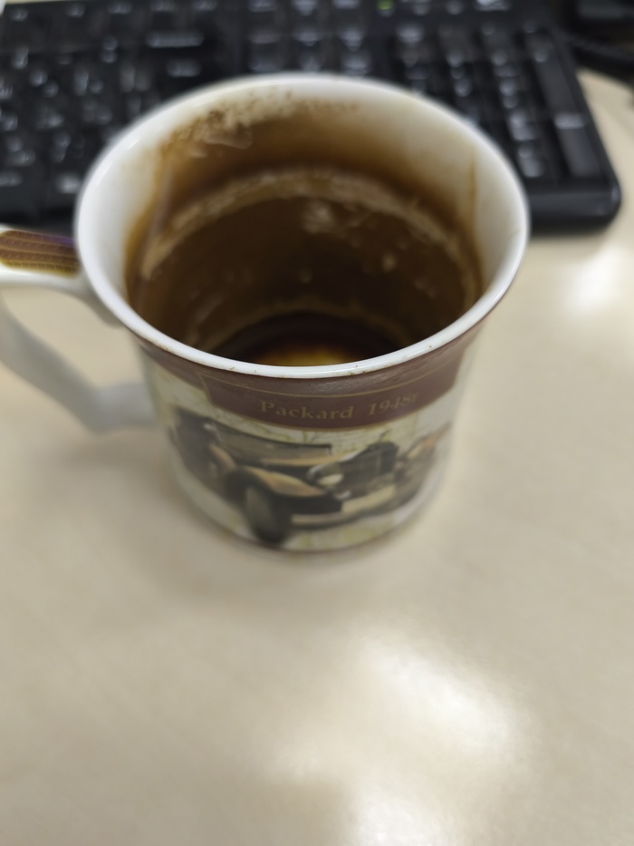 Видел как то пост про кружку коллеги. Вот, собственно кружка моего напарника. Обещает помыть ее не позднее 30 декабря и то, если это не будет выходным днем.