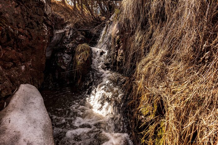 Пока суть да дело, наперво прогулялись до Яшмового водопада. Не так давно через каньон перекинули трап, немного подпортив его вид. Но ничего, немного повозившись, удалось поймать нужный ракурс и мостик в кадр не попал. А так, Грязнушка как и прежде, жила своей речной жизнью, журча по камням.