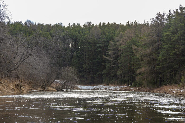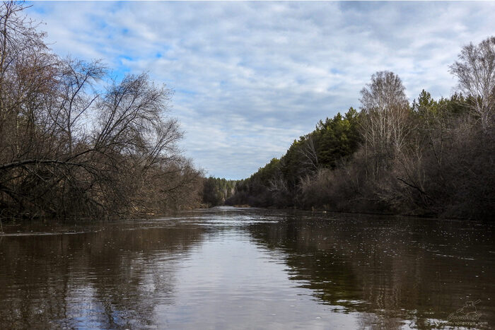 Круто повернув, река резво уносила нас от стоянки, на которой мы так замечательно переночевали год назад. Теперь начинался участок, на котором летом обычно приходится устраивать слалом в поисках глубины, или таскать своё плавсредство. Сейчас же мы плыли и ни о чём не задумывались, разглядывая красоты весеннего леса и ища впереди глазами то уток, то цапель.