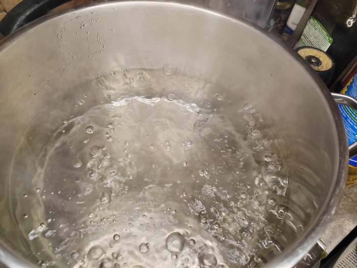 19. Набираем в кастрюлю воды. Снова ставим воду вариться. Лучше взять довольно большую кастрюлю с большим объёмом воды.