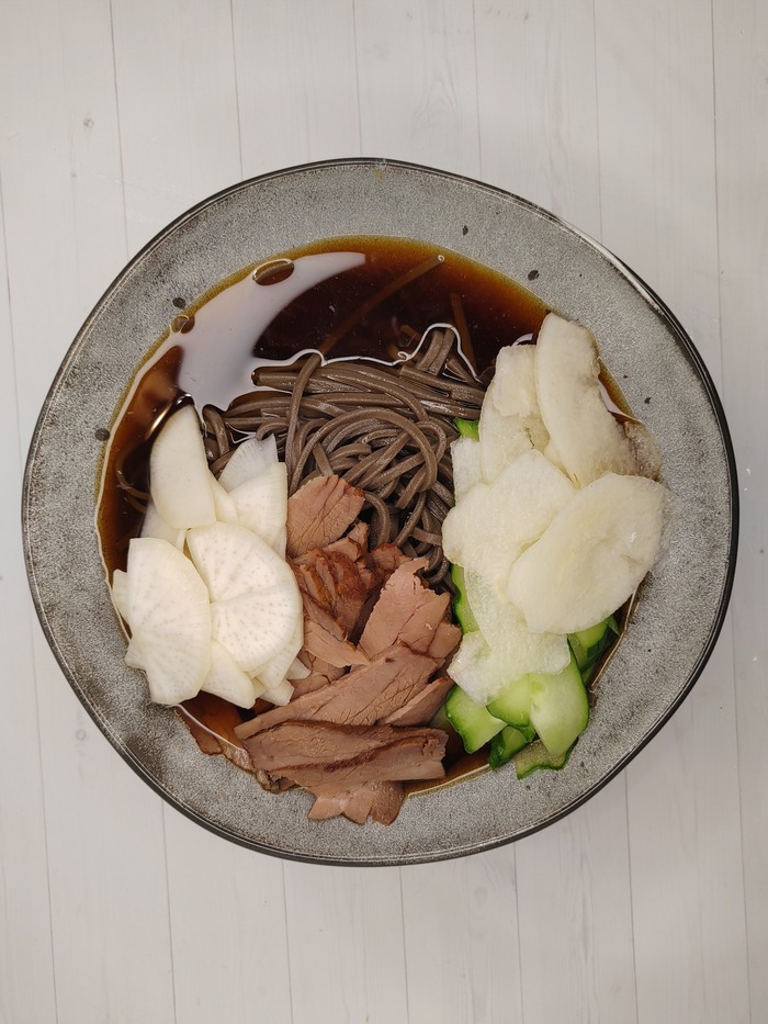 Но постойте, какое отношение куксу имеет к нэнмёну? Там же в названии только какие-то нэн и мён . Так вот, китаизм "мён" (면) значит то же самое, что и куксу - лапша, а нэн (냉) - холодный. Холодная лапша, карочи. Всё так просто и незатейливо.