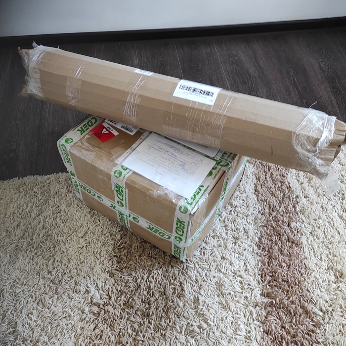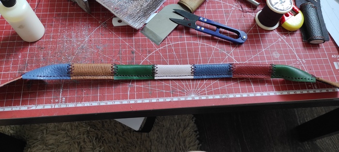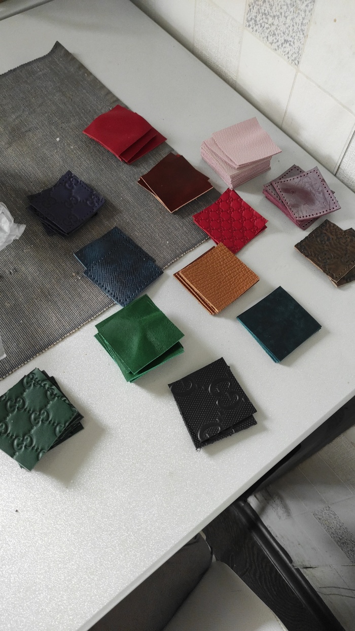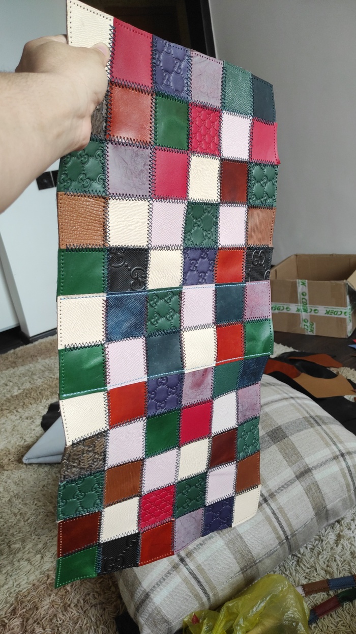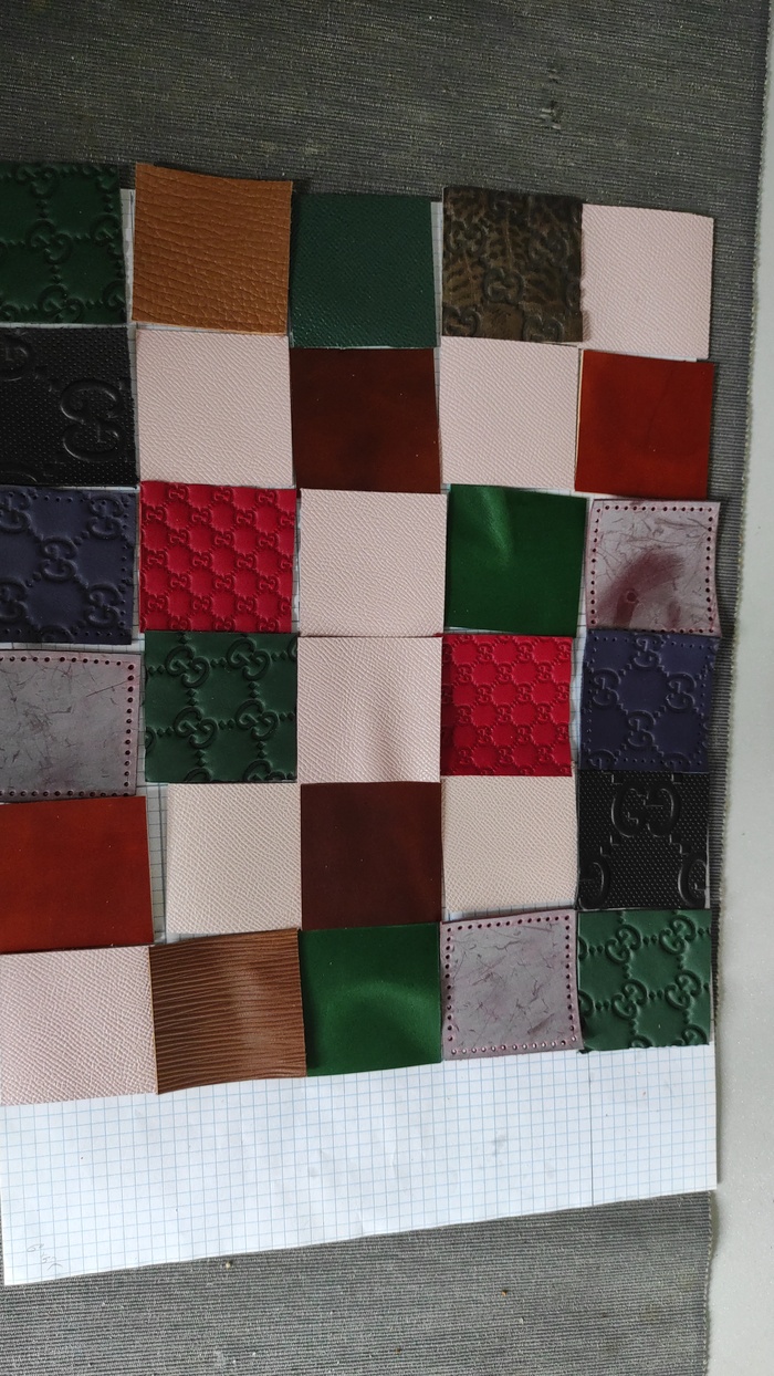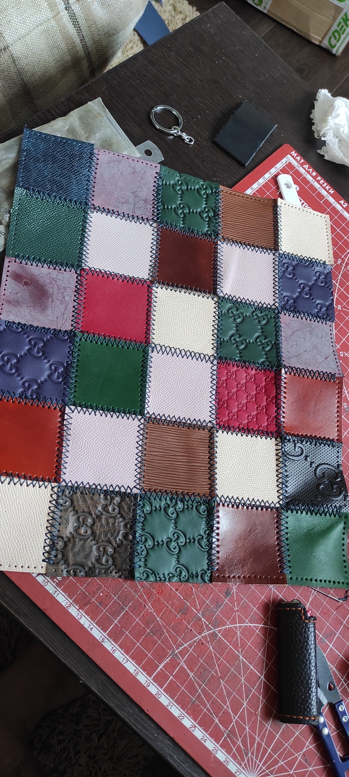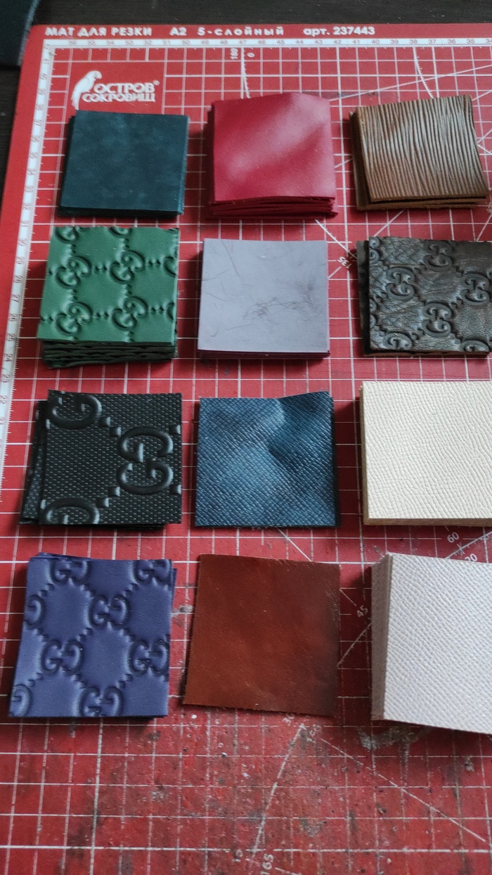 Всё началось с получения посылки с кожей. Разложенное на полу- это из рулона. В дело не пошло. А вот из коробки - в дело!!!