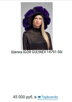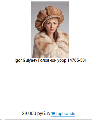 А вот и Наташа Королева рекламирует одно из его изделий-гигантскую и безобразно изготовленную шапку ушанку,которая, верно, стоит не меньше 20 тыс.руб.