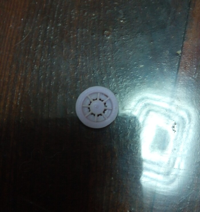 Первые два варианта я быстро проверил - не то. А вот лейку разбирать боялся. Однако ИИ посмотрел фото и успокоил меня, что лейка не клееная и не на защёлках, а тупо откручивается. И вуаля! Внутри я нашёл вот такой пиндершлёпчик: