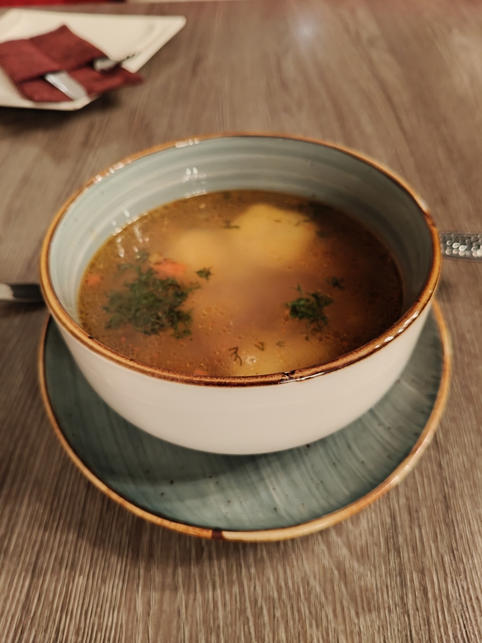 На кпп нас встретил представитель тургруппы роскосмоса, отвёз в гостиницу Центральная. У нас было забронировано 2 одноместных номера. Разложили вещи, пошли удинать рядышком в ресторан Лемар. Очень вкусно! Шурпа, баранина тушеная с овощами и медальоны из конины с овощами + чай по-ташкентски обошлись в 2700 рублей. Оплата или наличными рублями или перевод по сбп.