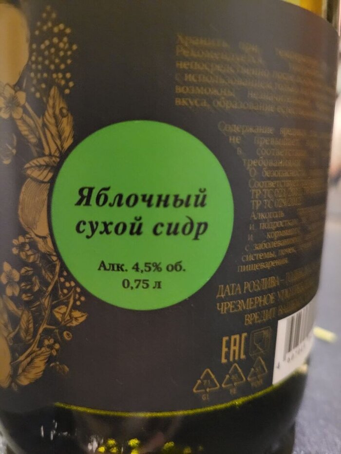 Вкус очень приятный. В бокале не шедевр, далеко нет. Но это очень легкий, питкий и приятный сидр. Вот во вкусе, конечно, полностью раскрылись зеленые яблоки, легкая кислинка и немного вяжущая сухость. Как будто зеленое яблочко откусил. Очень приятный, гастрономический вариант.