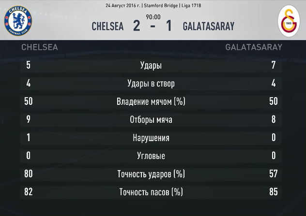 Галатасарай вновь подтвердил тот факт, что является весьма удобным соперником для Реала. Счет в этой встрече был открыт в первой же атаке мадридцев. Неспешная игра в пас на половине поля хозяев, рывок Родригеса за спины защитников и своевременный пас Бензема колумбийцу в свободную зону – это все, что нужно для выхода один на один с голкипером и открытия счета в этом матче. И дальше игра развивалась так же под диктовку «королевского» клуба. Реал играл неторопливо, даже академически. Перекрыв все подступы к собственной штрафной, гости не торопились в чужую. Пару раз Муслеру потревожили ударами с линии штрафной Роналду да Бензема, но это для голкипера была всего лишь разминка. Во втором тайме испанцы все-таки заставили капитулировать стража ворот Галатасарая во второй раз. Бензема принял мяч в штрафной турецкой команды, в окружении двух соперников, и умудрился отдать точную передачу на Роналду. Португальце никто не помешал «расстрелять» ворота с шести метров. Чуть позже третий гол в свои ворота едва не привез Муслера. Выбивая мяч из штрафной, он попал точно на ногу Родригесу. Колумбиец моментально оценил ситуацию и первым же касанием попытался перебросить голкипера и поразить пустые ворота. К его сожалению, удар получился слишком сильным, и круглый перелетел через перекладину. За десять минут до конца встречи игроки Галатасарая дождались наконец-таки ошибки со стороны Реала. Навас неаккуратно ввел мяч в игру, Инан «обокрал» Родригеса и перевел снаряд в свою линию атаки. А там уже Подольски и Снейдер разыграли нехитрую «двоечку», и последний не сильным, но точным ударом в самый угол сократил отставание в счете. Однако Реал сразу же восстановил разницу в счете. Модрич и Бейл на пару прошли с мячом по правому флангу, и хорват исполнил точнейшую передачу между соперниками на свободное место. Как раз туда, куда врывался Бензема. Француз мощнейшим ударом вонзил мяч в дальний угол и, таким образом, добавил к двум голевым передачам еще и гол, благодаря чему он и получил звание Лучшего игрока матча.
