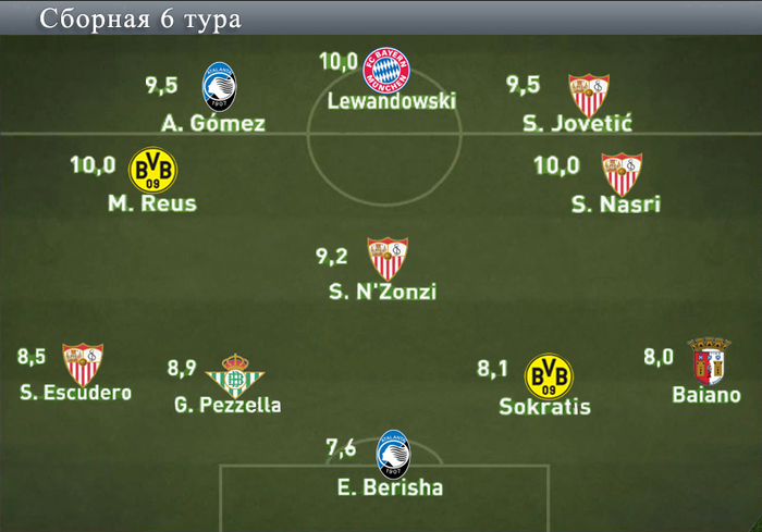Пьер-Эмерик Обамеянг (Боруссия) - дважды оказался в нужном месте при отскоке мяча, вот и дубль, плюс голевая передача на Кастро.