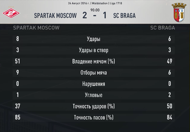 Спартаку позарез нужны очки, чтобы выбраться из «зоны стыков». Поэтому красно-белые с первых минут яростно пошли в атаку. Уже на десятой минуте Джано придумал шикарную передачу на Зе Луиша. Хозяев от верного гола спас лишь отчаянный бросок Адана в ноги форварду. А вот надежный обычно Ребров в этот вечер допустил серьезную ошибку. После навеса Дурмиси с правого фланга в штрафную голкипер как-то неуверенно пошел на перехват, но мяч не поймал, а отбил. Но не далеко, как раз на линию штрафной, где ждал своего шанса Себальос. И дождался. Первым касанием он подработал игровой снаряд, а вторым отправил его точно в угол ворот. Ребров, потерявший в этот момент ворота, справится с этим ударом не смог. Но это было еще не все. Не прошло и десяти минут, как Бетис организовал второй гол в ворота Спартака. Санабрия, получив мяч на подступах к штрафной красно-белых, элегантным пасом пяткой оставил в дураках Кутепова, тем самым помог Пардо выйти один на один с вратарем. И вновь голкипер был бессилен. Спартак навалился на ворота Адана всей мощью, какую мог себе позволить. Но оборона Бетиса держалась, как в лучшие матчи начала сезона. Сразу же после второго пропущенного, Промес вывел на удар Зе Луиша, но угол был слишком острым, и прошить вратаря не получилось. Мяч отскочил к вездесущему Промесу, и голландец уже головой скинул его на свободного Глушакова. Капитан москвичей бил, казалось бы, наверняка, но героический подкат Пеццеллы спас испанскую команду от гола. Красно-белые продолжали атаковать, нанеся в итоге за первый тайм двенадцать ударов по воротам соперника, но лишь пять из них шли в створ и не один не достиг цели. Зато у хозяев поля за то же время статистика была куда более впечатляющая: два удара, оба в створ, оба результативные. Во втором тайме у «мясных» перестали получаться атаки, видимо команда отдала все силы еще в первой половине встречи. А вот хозяева поля угрожать воротам Реброва стали гораздо чаще. Артем трудился в поте лица, но с выстрелом Себальоса в правую от себя «девятку» справиться шансов у него не было. Как итог: крупная победа хозяев поля при относительно равной игре. Спартак, как мне кажется, на гол на играл, но фатальное невезение лишило его этой возможности.