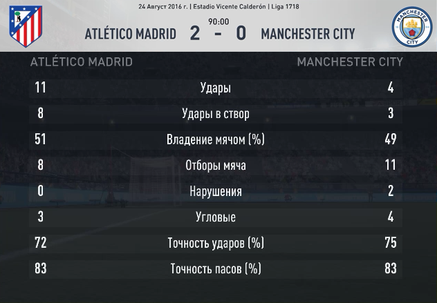 Атлетико в двух последних матчах потерял важные очки, пропуская голы на последних минутах. Чтобы избежать нервной концовки, «матрасники» попытались сразу пойти вперед и забить как можно больше. План был исполнен наполовину. То есть, атаки у них проходили, а вот с реализацией была беда. Чего стоит эпизод Гризманна на 14-ой минуте, когда Бериша спас свою команду от двух ударов в упор. Не прошло и десяти минут, как эта оплошность аукнулась испанской команде. Все началось с неточного паса Сауля вблизи своей штрафной. Кессье перехватил передачу и покатил круглого Куртичу под удар. Габи в отчаянном подкате смог выбить мяч из-под ног словенца, но первым на подборе вновь был Кессье. В этот раз он решил пробить сам и вогнал снаряд точно в правый верхний угол ворот. Этот гол выбил гостей из колеи, и они, за первый тайм, ничего путного так и не создали. А вот хозяева могли отличиться, и не раз. Яну Облаку пришлось потрудиться, чтобы отразить удар Гомеса в ближний угол. А Куртичу не хватило пары сантиметров, чтобы мяч попал в сетку, а не в штангу. И все-таки до перерыва второй гол случился. При подаче углового у ворот Атлетико судья усмотрел нарушение в действиях Коке и Габи и назначил пенальти, который уверенно реализовал Гомес. Если кто-то думал, что этот гол окончательно сломил дух Атлетико, то он заблуждался. После перерыва испанцы прибавили в движении и концентрации, и у ворот Аталанты стало гораздо жарче. Однако, мяч в ворота Бериши так и не шел. Впрочем, как и в ворота Облака. Итальянцы продолжали искать счастье у чужих ворот, и у них порой проходили неплохие атаки. И все же Атлетико забил. Невольно поучаствовавший в голах в свои ворота Габи, разыграв несколько раз «стенку» с Гризманном, по правому флангу атаки дошел до штрафной Аталанты. Затем француз, собрав на себя двух соперников у угла вратарской, сумел-таки протолкнуть мяч на открытого Габи. Его удар под самую перекладину стал единственным не берущимся для Бериши в этот вечер. Больше такой вольности в своей штрафной игроки Аталанты не позволяли. Матч так и закончился со счетом 2-1, и итальянцы вновь оказались сильнее испанцев.