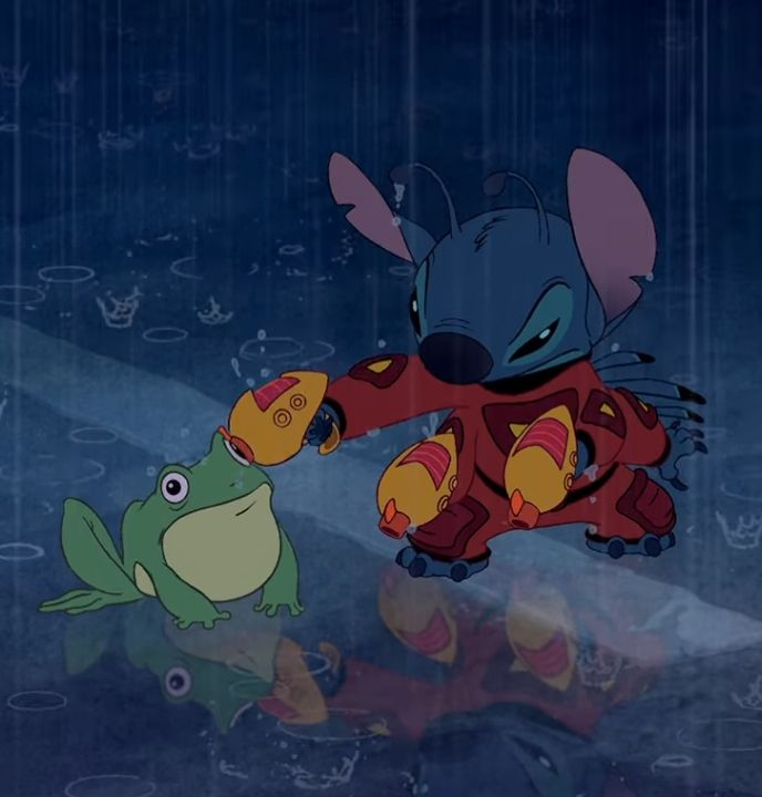 Образец 626, он же Стич — это то, как работает гений анимации и сценарного мастерства Криса Сандерса. Задуманный как сверхразрушительное биологическое оружие, он попадает на Землю и сталкивается с Лило. Его эволюция — сердце фильма. Он может быть смертельно опасным, насмешливым и грубым, а в следующую секунду — нелепо милым, ковыряющим в носу языком (только не говорите, что если в детстве зацепили мультфильм не пытались сделать также🌚) или пытающимся понять земные обычаи. Эта непредсказуемость делает его бесконечно обаятельным. Но при этом Стич не грубиян и озорник. Больше всего на свете он боится остаться в одиночестве. Один из самых пронзительных моментов — Стич, ушедший в лес с книжкой «Гадкий Утенок». Он смотрит на картинку, озирается по сторонам и произносит с леденящей душу тоской: «Я... один? Я — один!». Этот момент раскрывает его истинную суть — не монстра, а заблудшего, одинокого существа, жаждущего дома и семьи. Под влиянием Лило и концепции «оханы» Стич меняется. Если в начале его инопланетная брань заставляет робота-присяжного на суде «блевать саморезами», то в конце он готов пожертвовать собой, чтобы спасти «свою семью». Его спасение лягушечки (той самой, которой он угрожал бластером при приземлении!) — немой, но мощнейший символ его трансформации. Нежность, с которой он переносит её на обочину, говорит больше любых слов.