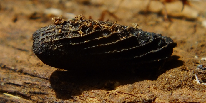 Итак, после примерно 2 лет в стадии личинки наш листоед наконец превращается в кокон (внутри куколка, да =). Выглядит это примерно как на фото ниже. У фото нет точного определения, но не сильно отличается от чехлика, правда же?