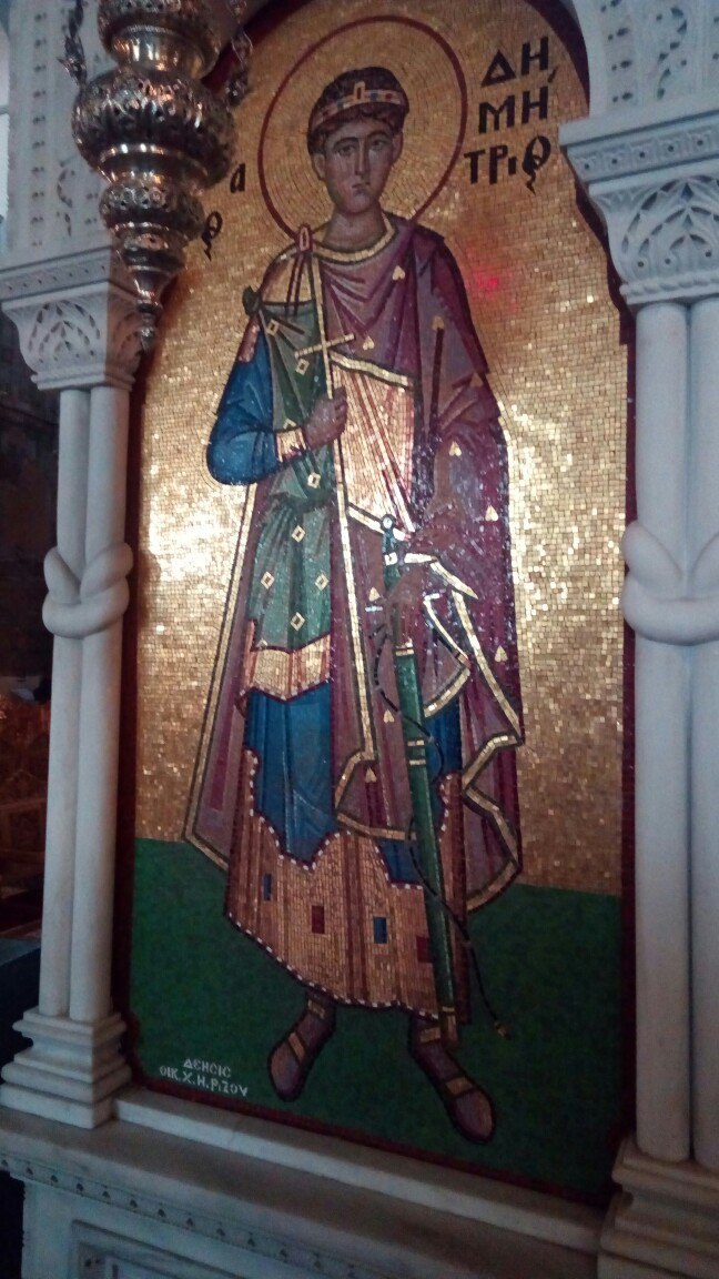 В этот день в храме святого Димитрия служили службу веригам святого Петра, во всяком случае постоянное пение «Петрос тон Петри» наводило меня на эту мысль. На клиросе находилось три молодых человека в подрясниках, пел, в основном один из них, иногда второй что-то подвывал в такт первому. В целом, пение отличалось примитивностью и однообразием, на мой взгляд русская школа церковного пения сделала огромный скачок вперед за прошедшие столетия. На протяжении всей службы Царские Врата были открыты, что немыслимо в нашей практике. Каждение на Господи воззвах: меня сильно удивило, поскольку осуществлялось противусолонь, как у старообрядцев (или я стал что-то уже забывать). После каждения был совершен светличный вход. Священнику предшествовал свещеносец без стихаря, зато в настоящей рясе, из под которой задорно мелькали ярко-синие кеды адидас. Они обошли добрую половину храма и вернулись на амвон, который представляет собой огороженный участок храма без всякого возвышения. Я очень хотел услышать пение Свете тихий: на греческом, но его не пели, ограничивались простым чтением! Это весьма огорчило меня. Дальше вечерня шла своим чередом, но сразу после пения тропаря дня, молодые люди, стоявшие на южной стороне амвона куда-то ушли, а на северной стороне появилось множество женщин разного возраста, которые начали петь молебен. То что поют они молебен я понял не сразу. Участие священника в этом молебне сводились к минимуму, ограничиваясь только произнесением сугубых ектений на каноне и чтением Евангелия. Весь канон святому Димитрию, кстати, пелся, а не читался. Я не стал дожидаться окончания молебна и по окончании чтения Евангелия покинул храм. Нужно было ещё пополнить мои продовольственные запасы перед очередной отправкой в горы.