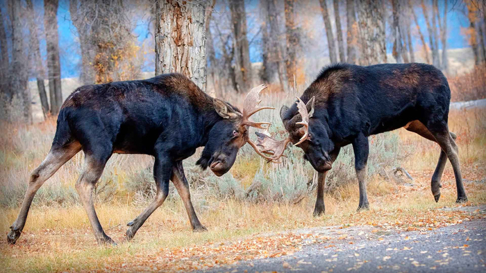 Осенью у лосей и оленей начинается гон. Самцы меряются силой, сплетаясь рогами и ударяясь ими с разбега. Сухой треск и скрежет стоит на весь лес, но задачу уничтожить друг друга самцы в поединке не ставят: достаточно почувствовать силу соперника, чтобы понять, кто сильнее, и на этом схватку можно считать оконченной.