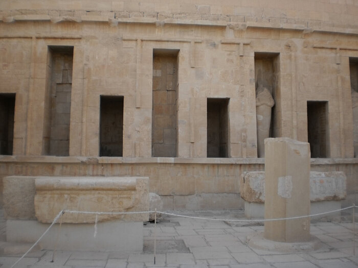 Ещё один древний храм за день. Величественные статуи, колонны, тёмные комнаты, скрытые от посетителей, всё хотелось фотографировать и как маленькому ребёнку потрогать, прикоснуться к истории. Хочется сказать большое спасибо, всем кто сохранил этот памятник: Пришедший к власти Тутмос III приказал уничтожить следы владычества своей мачехи Хатшепсут. Коснулось это и заупокойного храма. Его скульптуры были разрушены и закопаны недалеко от храма. Через много столетий, усилиями археологов, удалось восстановить былое величие храма.