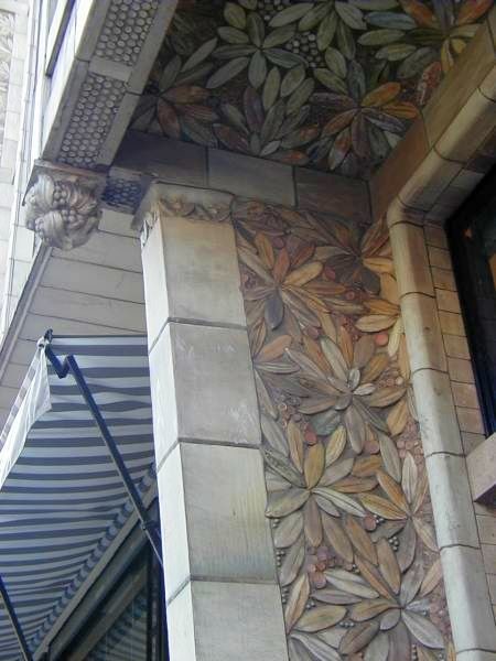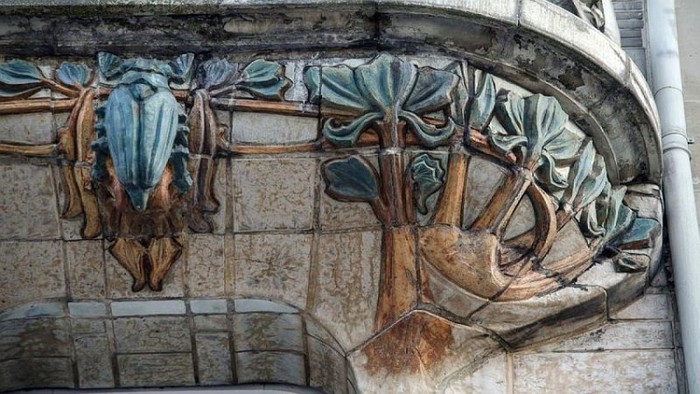 Здание, полностью задекорированное рельефной керамической плиткой и объемными лепными панно, стало настоящим воплощением арнуво.