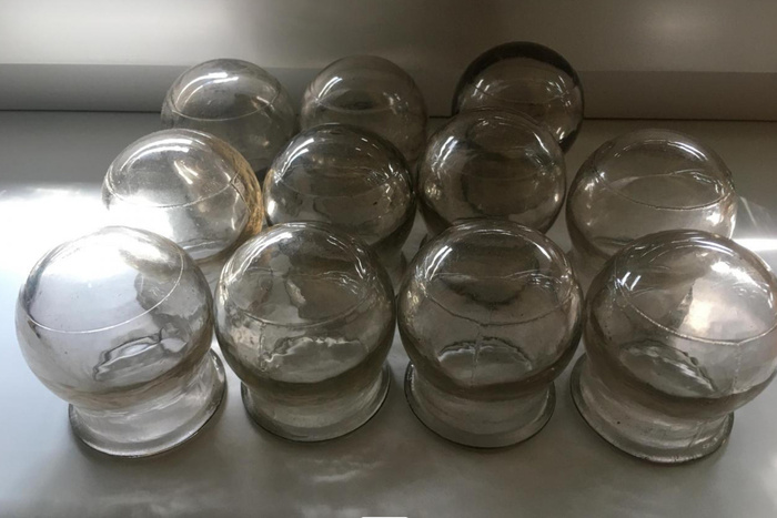Классические медицинские банки — это небольшие стеклянные сосуды с округлым дном и толстыми стенками. Суть метода проста: банку нагревали изнутри пламенем, создавая вакуум, и быстро ставили на кожу — обычно на спину или грудь.