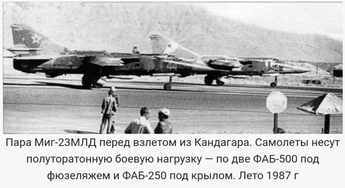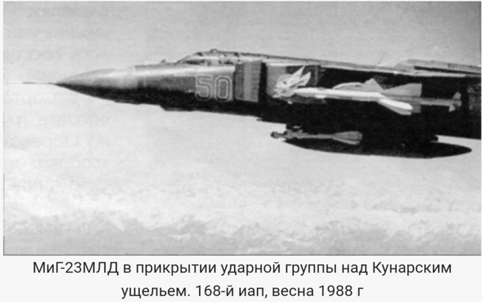 В 1979г. советские вооруженные силы были введены в Афганистан. В составе частей ВВС, направленных в эту страну, находились и истребители МиГ-23, разместившиеся на аэродроме Кабул, а несколько позже — в Баграме. Помимо задач обороны от возможных действий ВВС Пакистана, МиГ-23МЛД широко использовались для нанесения ударов по наземным целям, причем потери от огня зенитных средств противника были минимальными: благодаря высокой тяговооруженности МиГ-23 резко набирали высоту после взлета и быстро выходили из зоны поражения ПЗРК, с которыми «душманы» подкарауливали свою добычу вблизи аэродромов. Кроме того, успешному применению МиГ-23 в условиях высокогорья способствовали хорошие взлетно-посадочные характеристики этой машины. В воздушном бою советские МиГ-23МЛД сбили один пакистанский истребитель F-16A. В то же время пакистанским истребителям удалось уничтожить два МиГ-23 ВВС Афганистана.