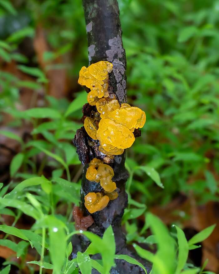 Гриб известен своим характерным студенистым плодовым телом от ярко-желтого до оранжевого цвета, которое похоже на желеобразную массу. Его можно найти на мертвой, разлагающейся древесине широколиственных деревьев. Чаще всего это наблюдается во влажной среде, так как для формирования плодового тела требуется достаточное количество влаги.