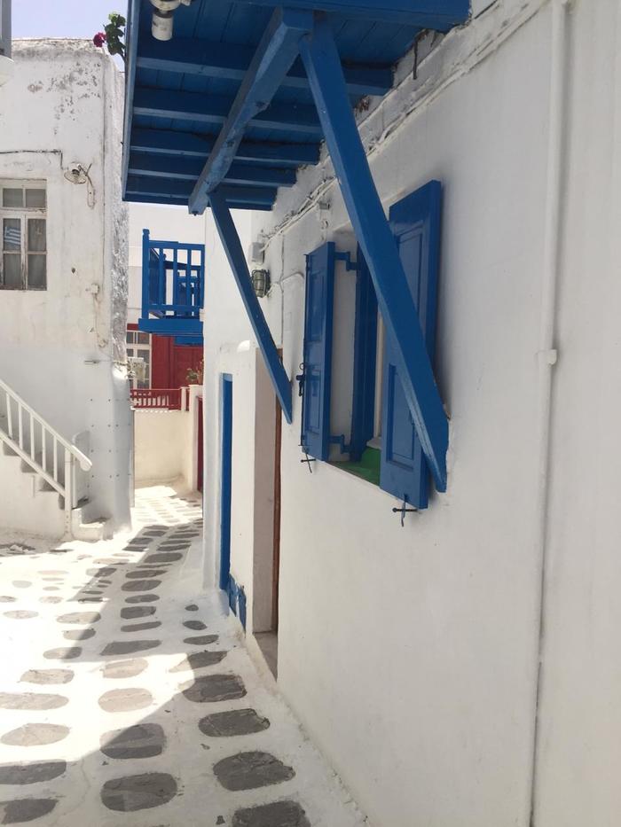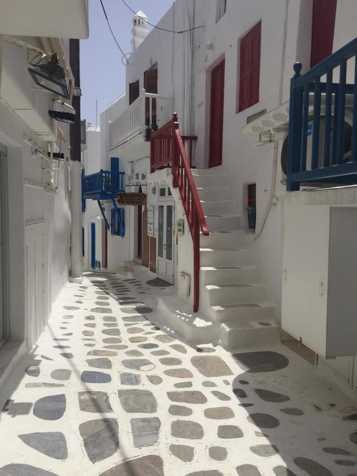 Остров тусовок, вечеринок, шопинга, дорогих отелей и красивых вилл. Здесь вальяжны все, даже пеликаны. Облюбовав таверну Parapoetiani в районе маленькой Венеции, он захаживает сюда время от времени за порцией рыбы. Местный повар не против и радушно делится с гостем.
