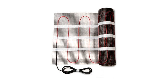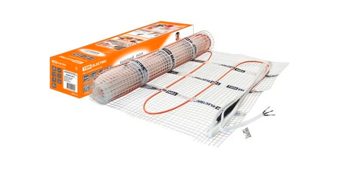 Электрический теплый пол работает на основе нагревательных кабелей, матов или инфракрасных пленок, которые подключаются к сети.
