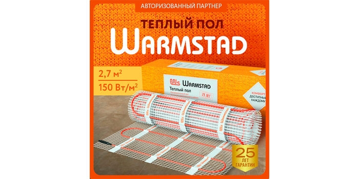 Warmstad WSM 300 2.0 нагревательный мат для монтажа под плитку. В его основе лежит двухжильный кабель, расположенный на сетке из стекловолокна, обеспечивающий равномерный прогрев пола. Это решение зарекомендовало себя как надежное и удобное в установке.