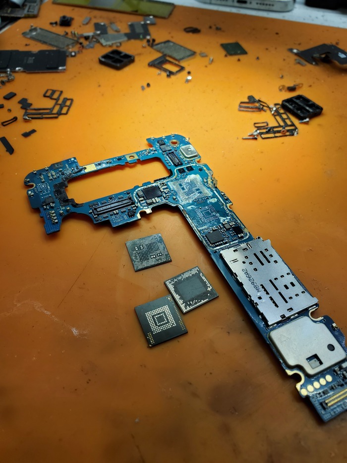 Естественно телефон бывал в сервисах, где даже смотреть на него боялись, поэтому плата была в изначально превосходном качестве на восстановление.