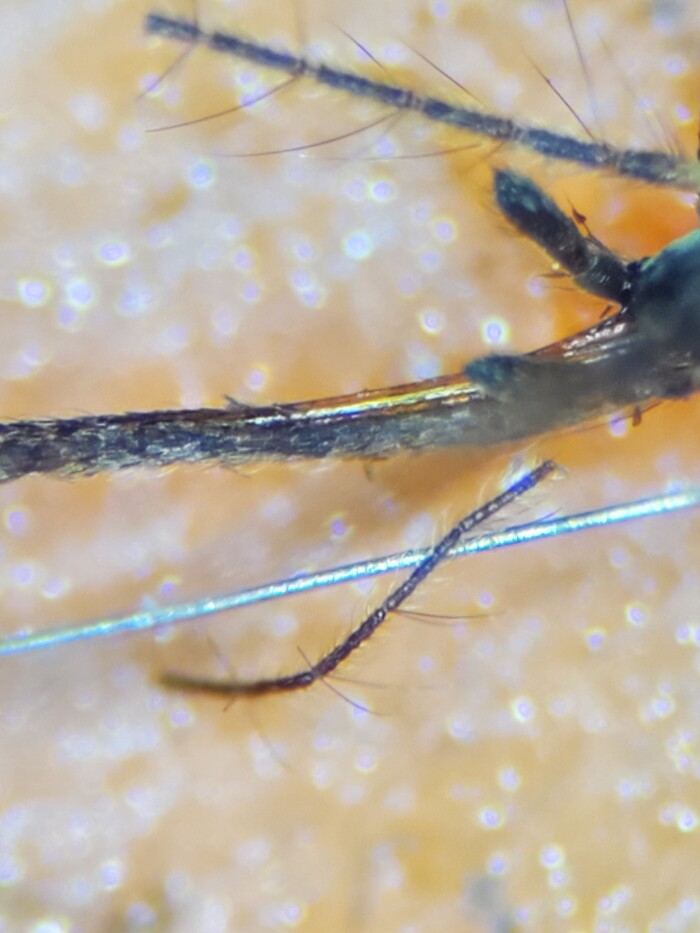 Для данных работ использовалась проволока диаметром 0.02мм и 0.008мм. Вот масштаб рядом с покерфейсом мелкого комара: