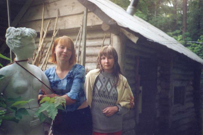 Берега у озера были топкие, илистые, заросшие травой и кустами, и мыться в нем было решительно невозможно. Если пройти дальше вдоль берега, можно было дойти до места с галькой, но все равно температура воды, да и воздуха, не слишком располагала к банным процедурам. Поплавать еще можно, но полноценно искупаться вряд ли.  Так что наш знакомый художник Петр любезно предложил нам свою баню. На 4-м курсе мы уже доросли до такой чести. Жил художник в глубине леса. В назначенный помывочный день, нам, четверым одногруппницам, была дана инструкция, как из нашего лагеря добраться до петиного хутора. Звучало она как-то примерно так: сначала по тропинке до последнего дома, где собака лает, обойти администрацию, потом через лес метров 500 на север (ориентируйтесь на мох), там увидите кусты, где еще кукушка кукует, сверните чуток налево и вскоре выйдете к избушке. Не знаю, каким чудом, но мы таки избушку нашли, видимо слишком велико было желание оттереть с себя недельную грязь. Баня была настоящая - деревянный сруб, внутри раскаленная печка, веники, и после желающих обливали ледяной водой из шланга. И предлагали отведать петину «зубровку». Я не пробовала, но эксперимент показал, что она способна пробуждать в организме скрытые вокальные способности.