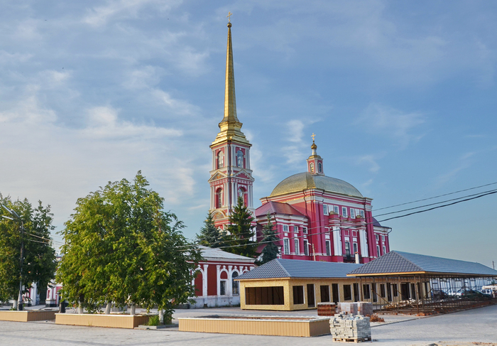 Как и многие города в этих краях, Козлов, сменивший в ХХ веке имя на Мичуринск, был основан для защиты южных территорий русского государства от набегов татар. Датой его основания считается 1635 год. Так что в 2035 году Мичуринск отметит свое 400-летие. И видимо, в честь этого события местная администрация заранее перекопала главную пешеходную улицу города, на которой сохранились старинные купеческие особняки. Поэтому вместо открыточных видов в центре города летом 2024 года перед нами предстала стройка с сопутствующими атрибутами.