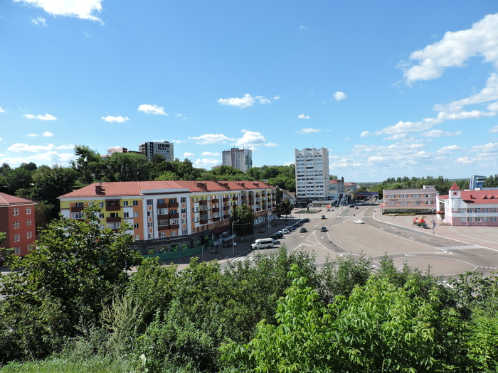 Разумеется, замок расположен на горе, поэтому со смотровой площадки прекрасный вид на центральную площадь города (площадь Ленина, конечно) и, сквозь кроны деревьев, на Припять.