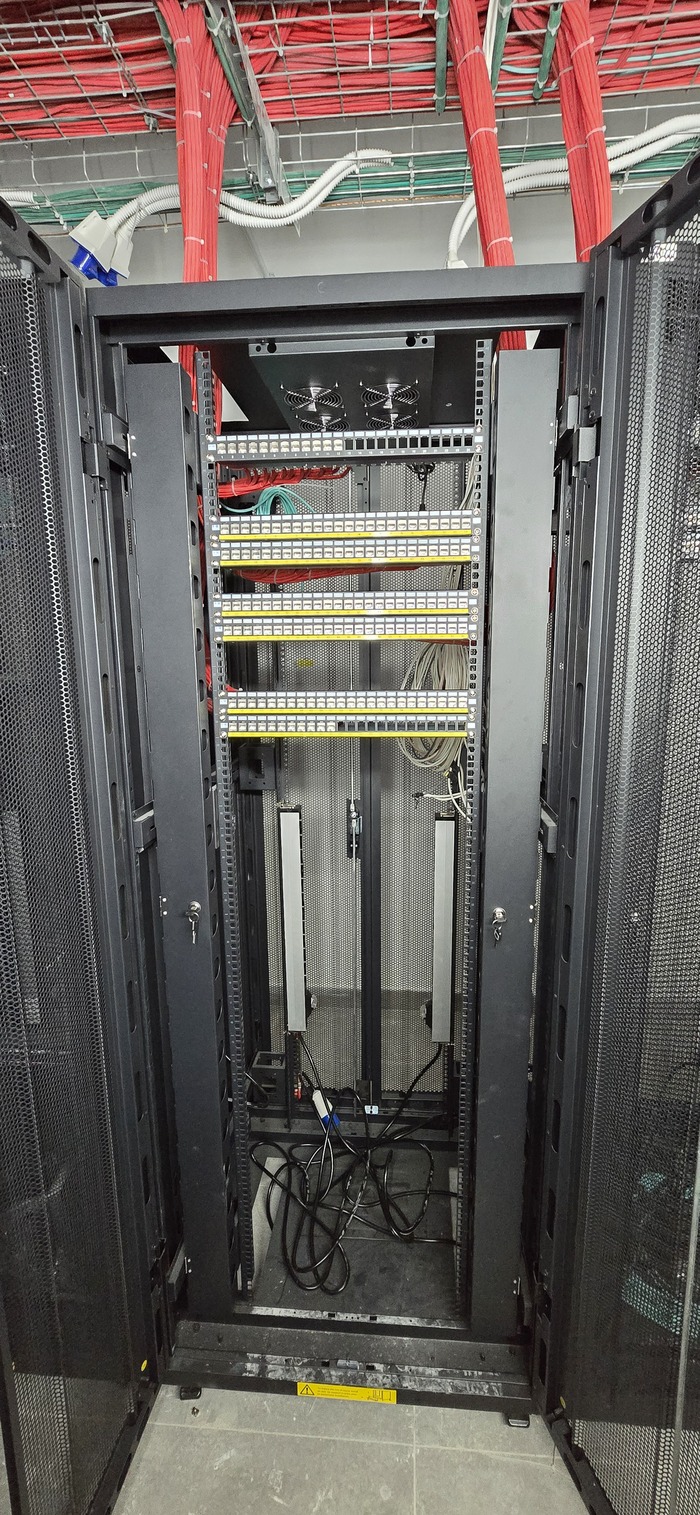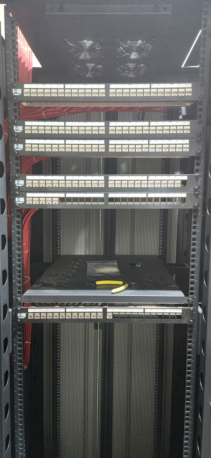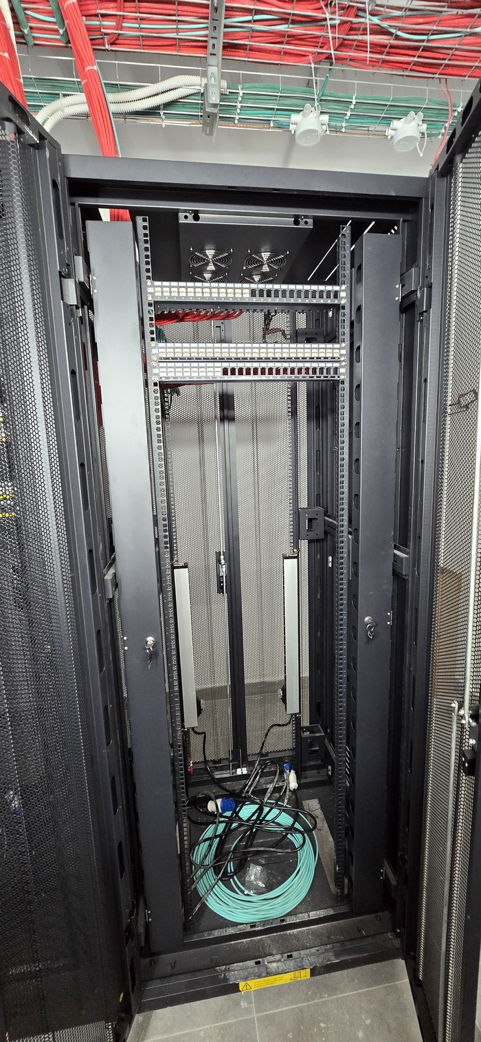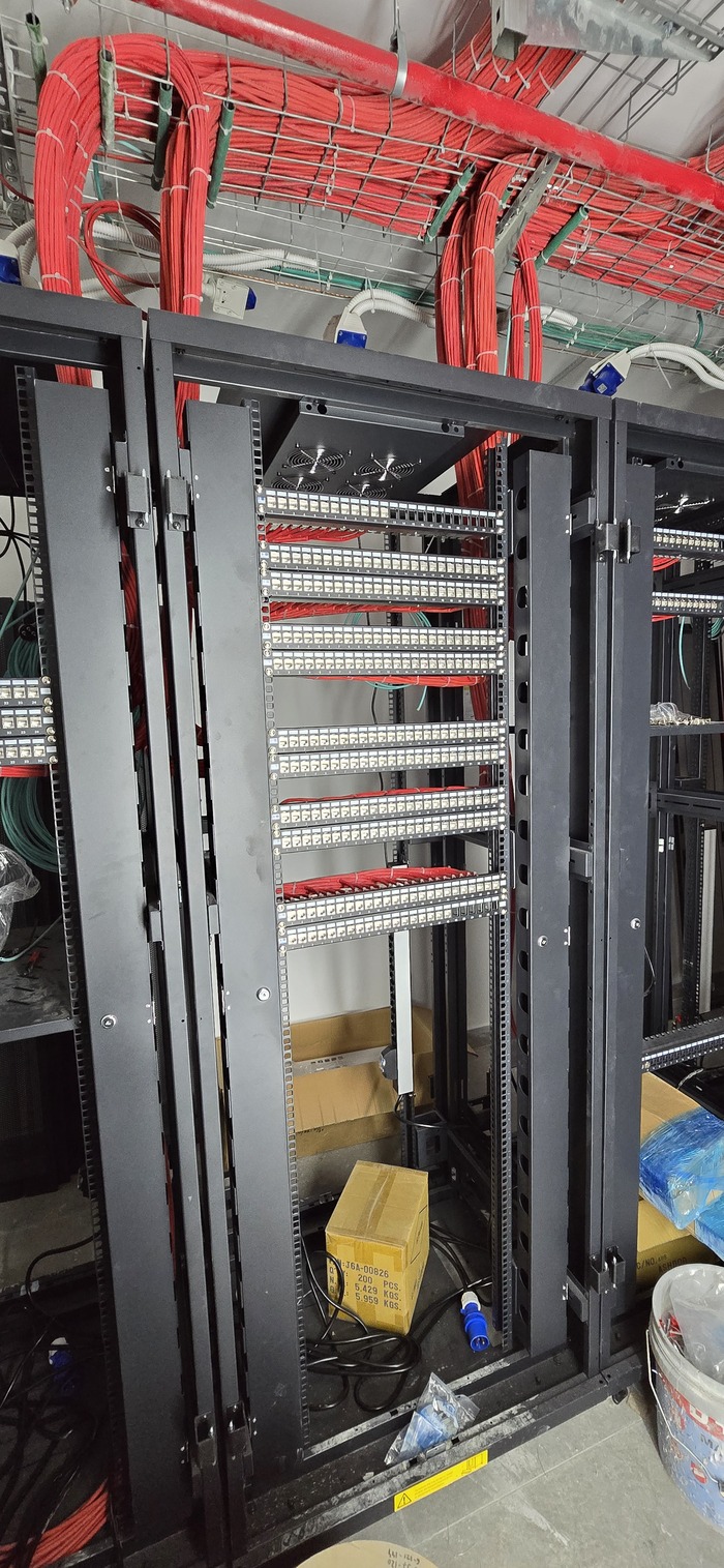Ну и установка коннекторов и панелей и финальный вариант Непосредственно шкафов. Осталось наклеить нумерацию, завершить установку коннекторов на местах и проверки. (Ну и чуть прибраться, так как в этой комнате работали не только мы, а ещё очень много народа ).