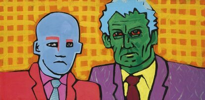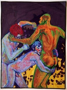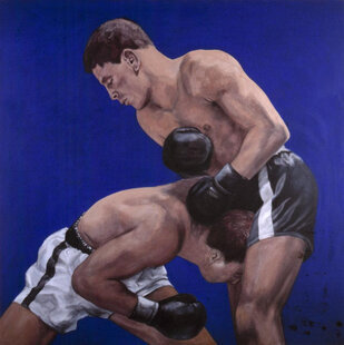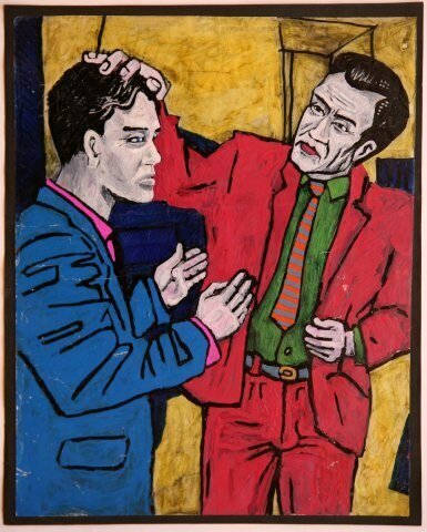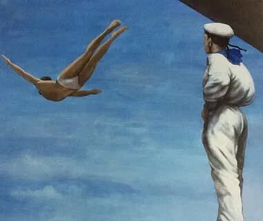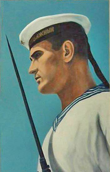 Работа 2003 года «Моряки». Можно рассматривать ее как обобщенно-монументализированный парный портрет – жанр, нередко встречающийся в зрелом творчестве Гурьянова.