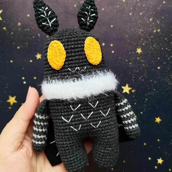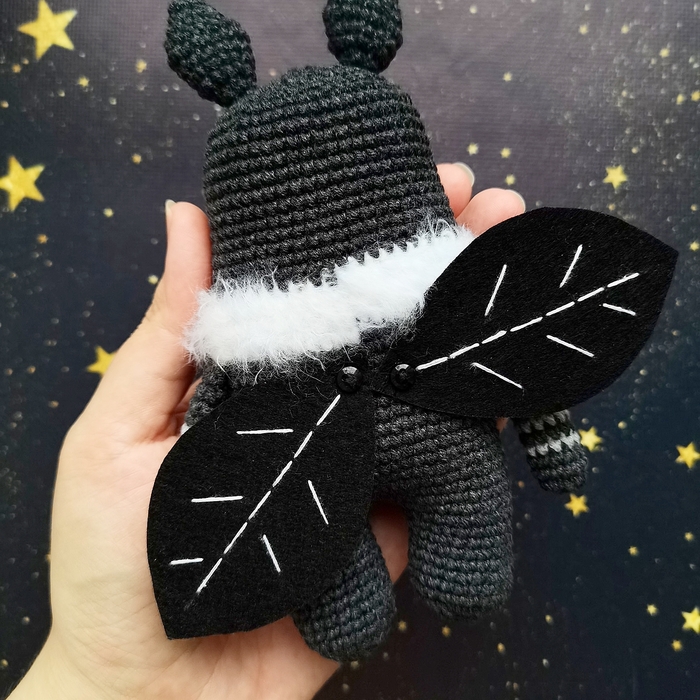 Сегодня я принесла вам необычную игрушку. Чего в ней необычного спросите вы? Ну во-первых, она больше моих обычных игрушек в несколько раз (фото ниже). Во-вторых, этого мотылька я связала для себя :) я ведь как сапожник без сапог, для себя редко вяжу. А тут любовь с первого взгляда.