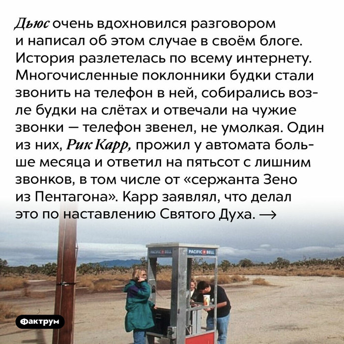 1203 factroom обзоры телефонов и не только Таинственная телефонная будка посреди пустыни Мохаве 3 года назад Показать полностью 4 Фактрум Телефон Пустыня Мохаве 1960 Длиннопост Повтор 10 6 5 4 1 Ещё 0