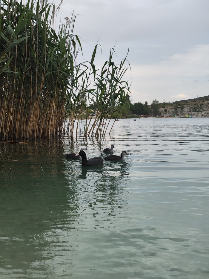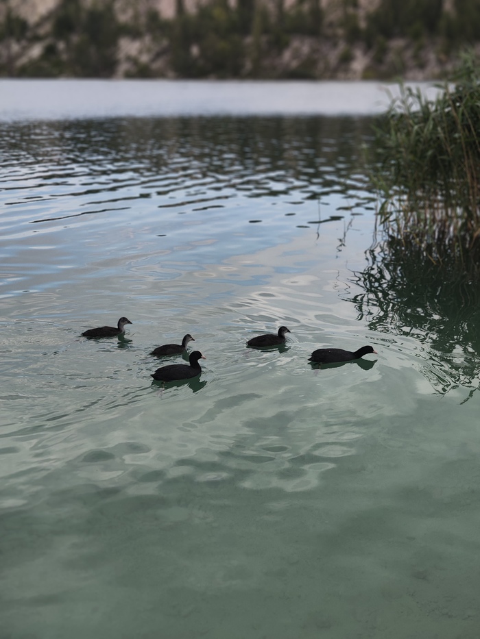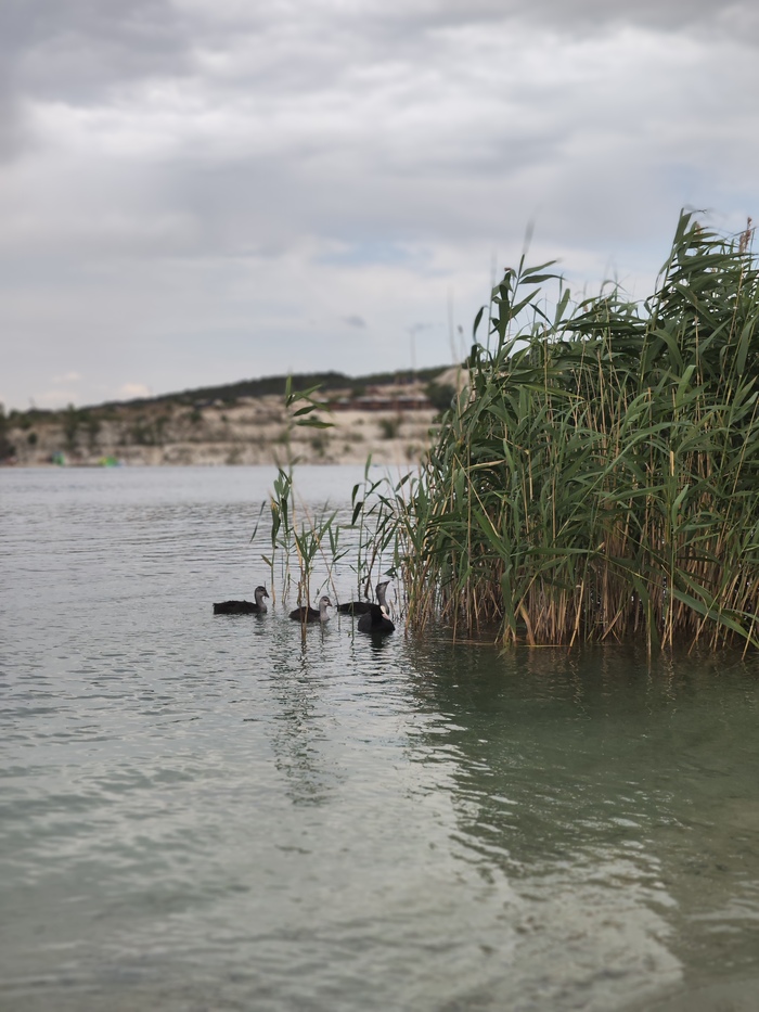 В озере (карьере) п.Скалистое (Марсианское озеро) живут прекрасные создания - лысухи черноморские (или водяные курицы😂).