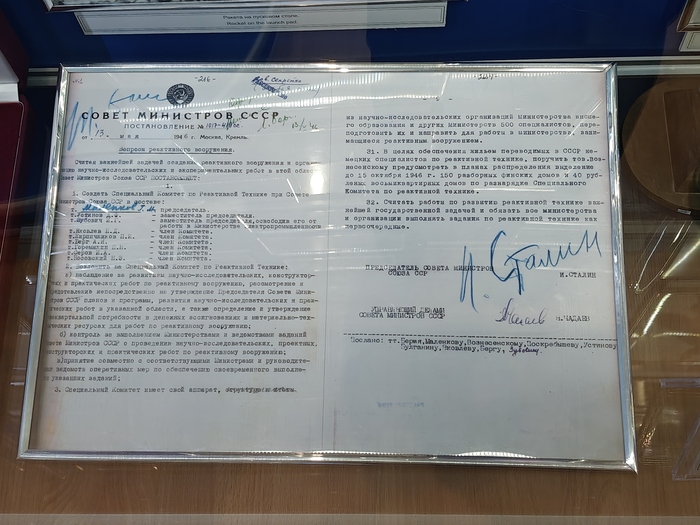В музее очень подробно рассказывают и наглядно показывают историю создания космодрома, начиная с Постановления Совета Министров от 13 мая 1946 года за подписью Сталина и Берии о создании гос комитета по реактивной технике.
