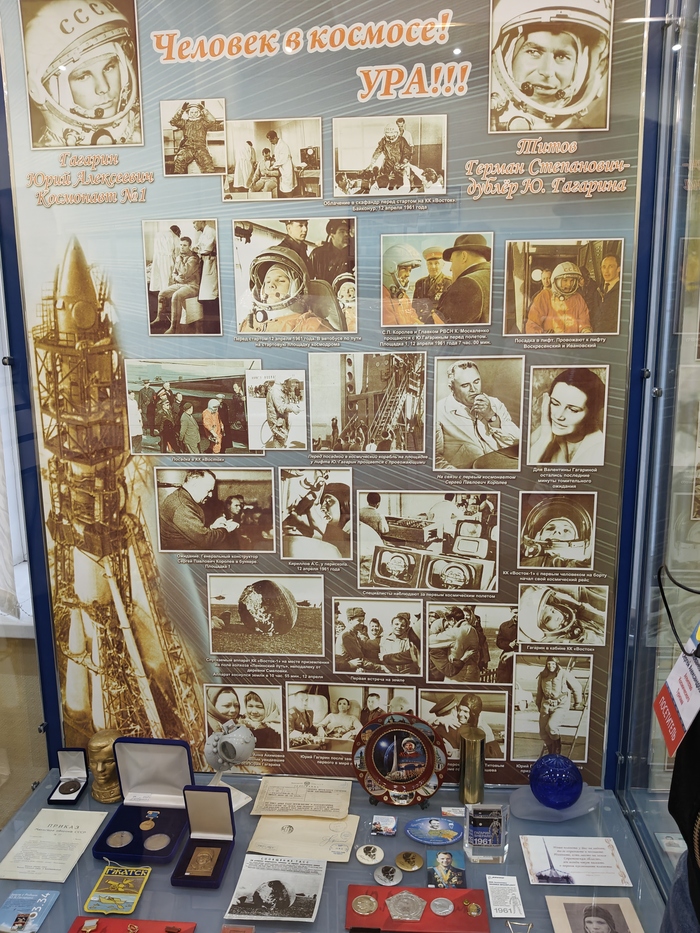 В музее огромное количество экспонатов, два этажа заполнены фотографиями, вещами космонавтов, ценным подарками, есть спусковая капсула и скафандры, первый центральный пульт запуска ракеты, макеты кораблей, рабочие части ракет. Все дышит историей покорения космоса!