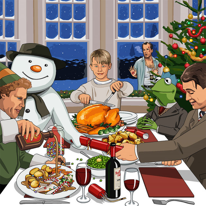 «Пожалуйста, нарисуйте чудесный рождественский ужин Кевина Маккалистера, Джорджа Бейли, Боба Крэтчита (лягушонка Кермита), эльфа Бадди и снеговика, за которым наблюдает с улицы озябший Джон Макклейн. Бенджамин Аллен».