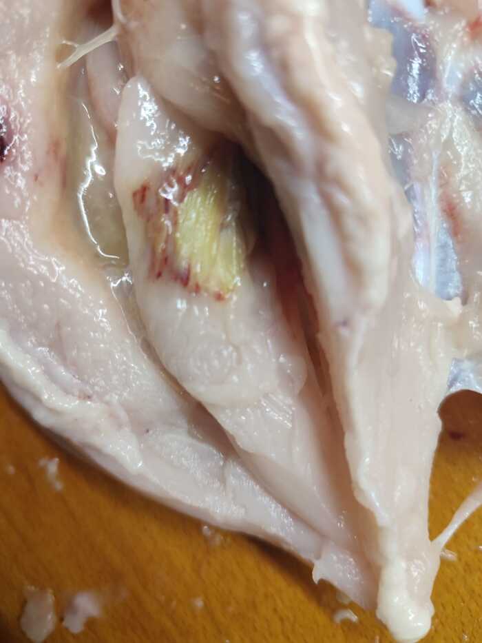 Ну и вчерашний случай. Куриная грудка на кости. Приношу домой, начинаю разбирать и тут такое буэээ... Запах соответствующий.