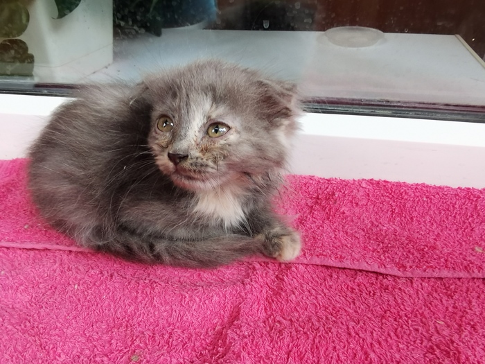 К подъезду подкинули котят. Жалко таких людей, ни души ни мозгов. Все вислоухие. Рыжая девочка, дымчатая девочка и рябой пацан.