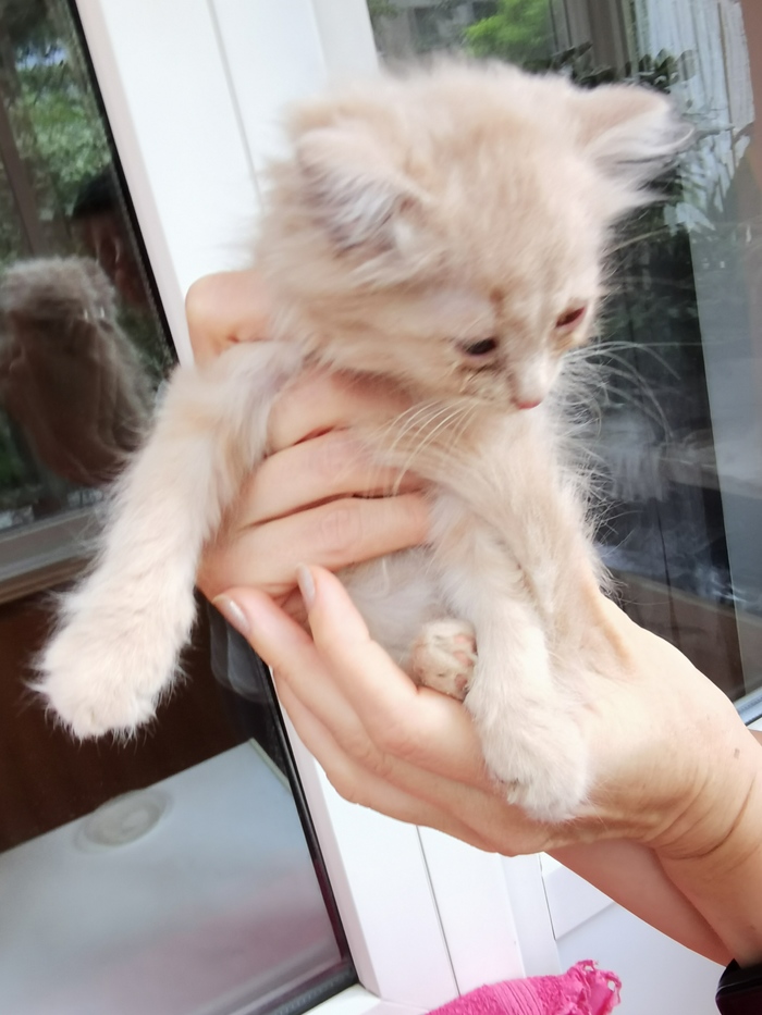 Вернувшись домой с работы, услышал отвратительное сюсюканье. Причиной его был принесенный сыном котенок, вот такой:
