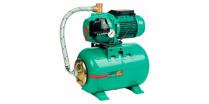 Встроенный гидроаккумулятор объемом 24 литра поддерживает стабильное давление в системе, что предотвращает перепады давления и гидроудары. Реле давления и манометр позволяют точно настроить и контролировать работу устройства, обеспечивая автоматическое включение и отключение системы в зависимости от потребления воды. Корпус насоса выполнен из прочного чугуна, а вал из нержавеющей стали AISI 304, что гарантирует долговечность и устойчивость к коррозии.