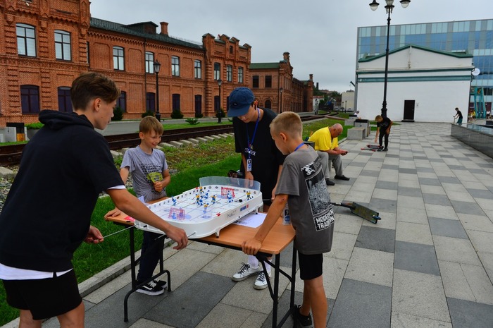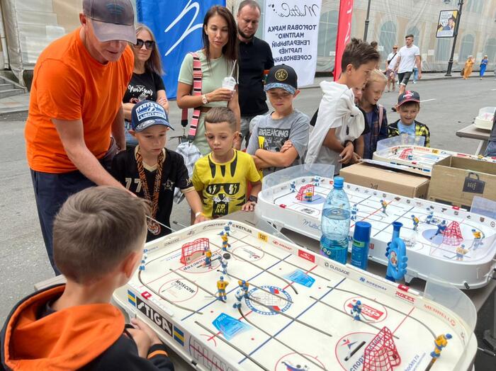 На равных играли и взрослые и дети. Настольный хоккей подвластен всем возрастам!